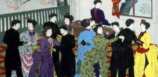 鹿鳴館での舞踏会の様子を描いた浮世絵